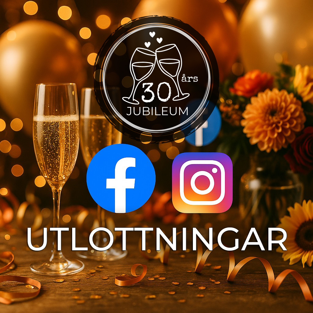 Vi firar våra 30 år genom att skänka bort jätterfina produkter i utlottningar på Facebook och Instagram!