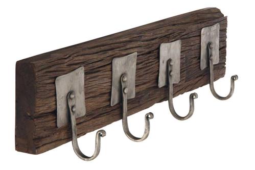 Klädhängare - Rustik krokbräda i återvunnet trä med krokar av grovt smide. Tänk denna i hallen, sovrummet eller i köket i en fjällstuga.