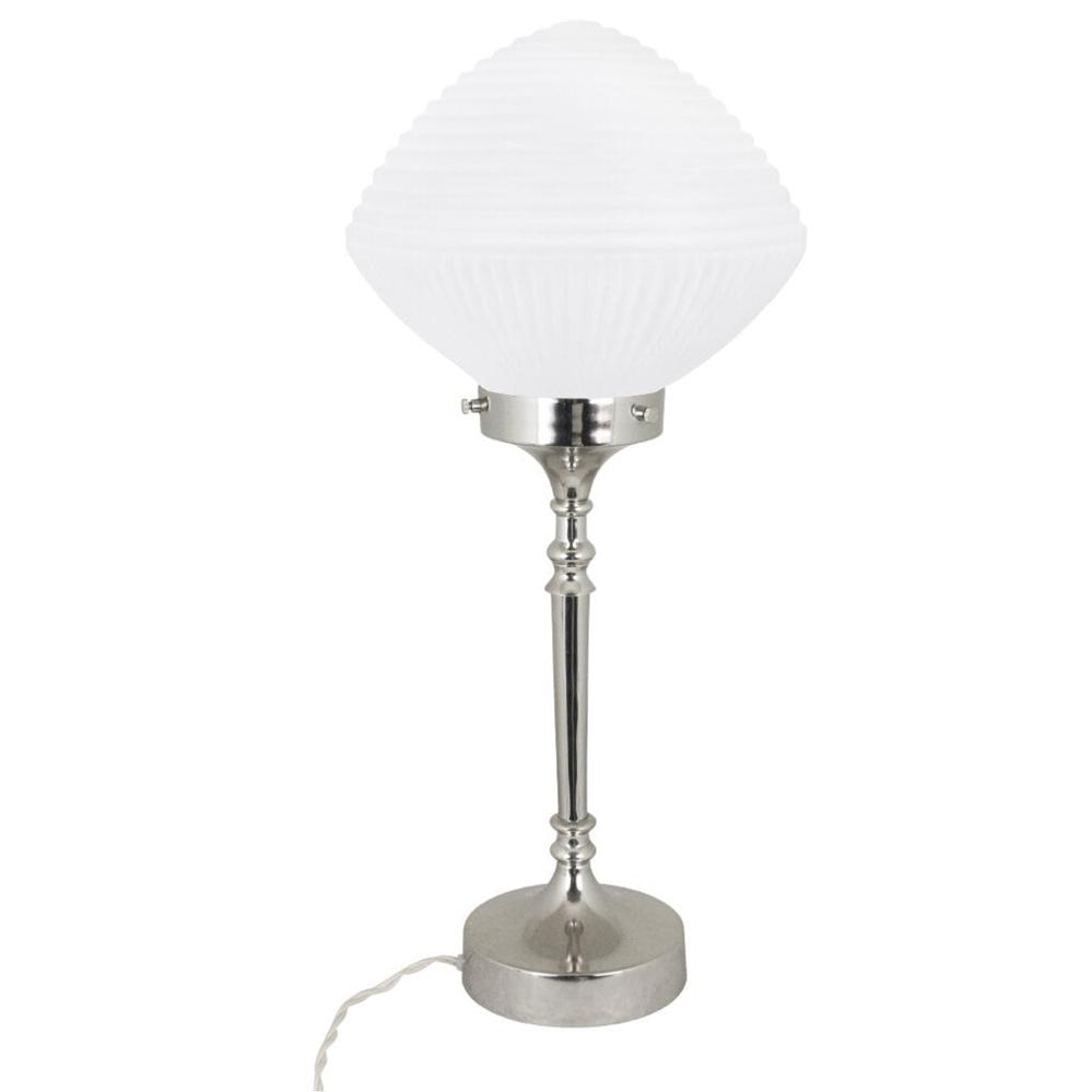 Elegant bordslampa i nickelfinish med frostat glas.Kupans runda