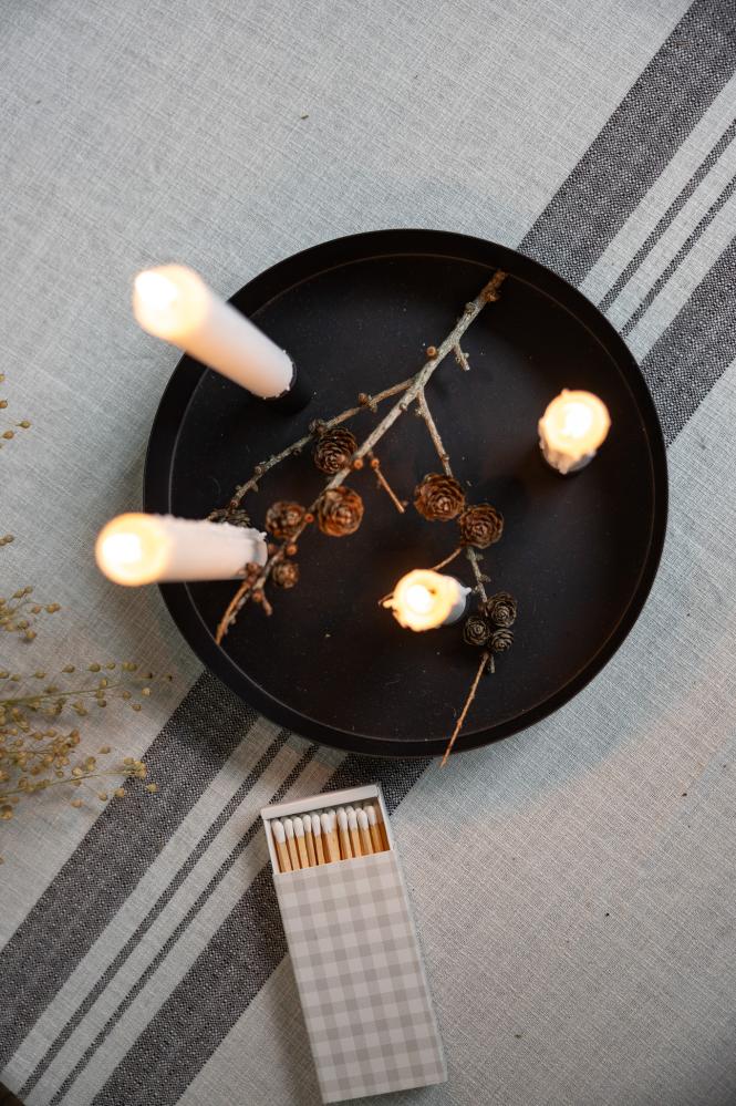 Placerar den i mitten på dukningen på ett stort bord, i ett fönster eller på soffbordet.