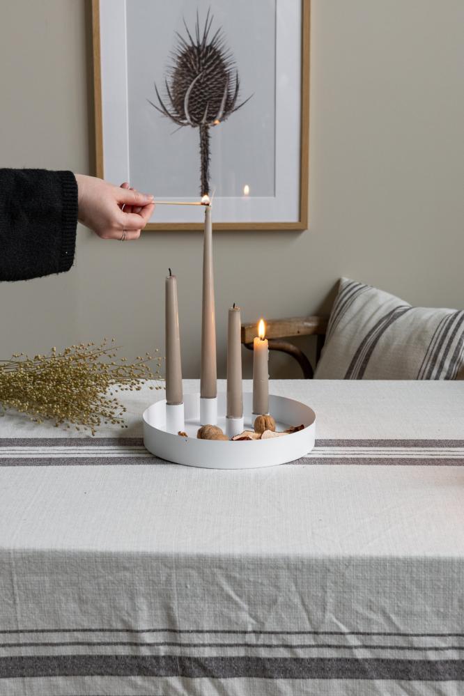 Bordsljusstake med magnetiska ljushållare. Nu kan du göra din bordsljusstake ännu mer personlig och variera den med olika placeringar av ljushållarna.