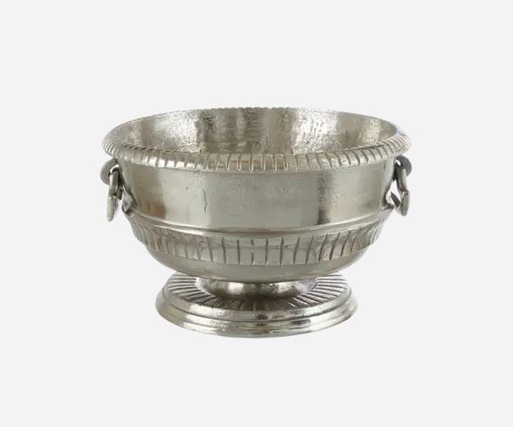 Superfin chamagnekylare på fot i nickelfärgad aluminium. Tänk så vackert man kan duka upp dem denna och kyla drycken på middagen, festen eller kalaset. Dessa är även superfina att plantera i. Och magiska presenter till bröllopspar, jubileum eller studenten. Detta är den mindre modellen, det finns även en större.