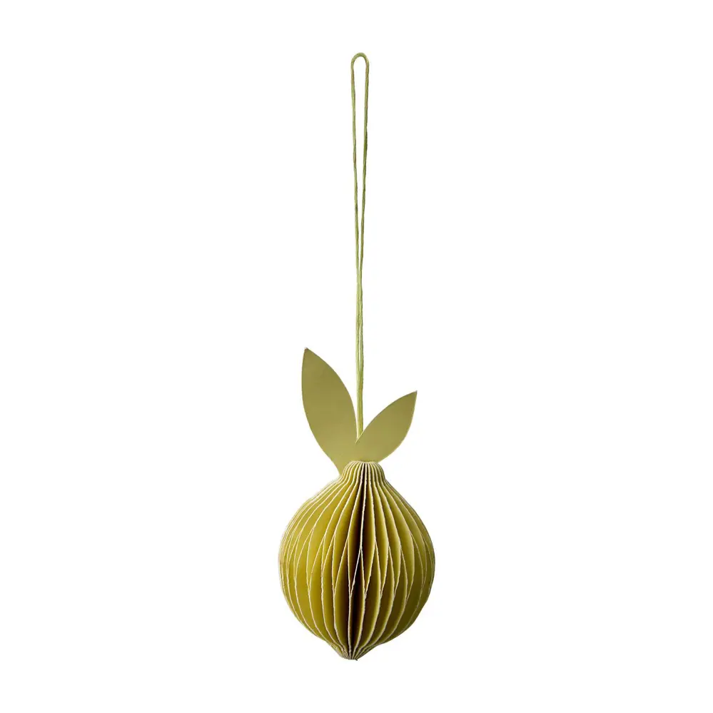 En citron i papper. Fint och somrigt pynt att ha liggande i en skål eller hängande på en krok.