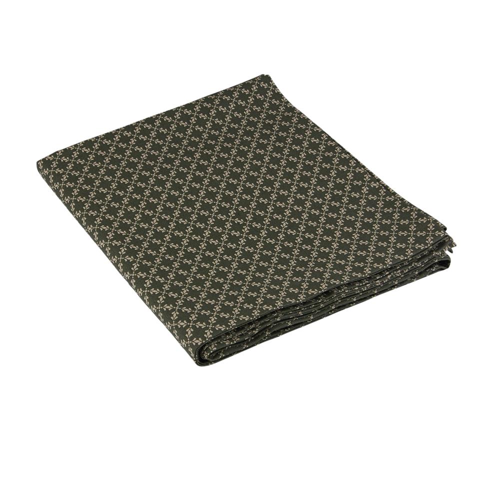 Duk i bomull med ett tryckt gulligt julmönster på, som skapar en varm julkänsla i dukningen.