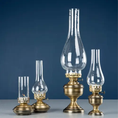 Jättefin ljuslykta i form av en gammaldags fotogenlampa i antik mässingsfärg. Ett stort värmeljus eller litet blockljus passar i denna.