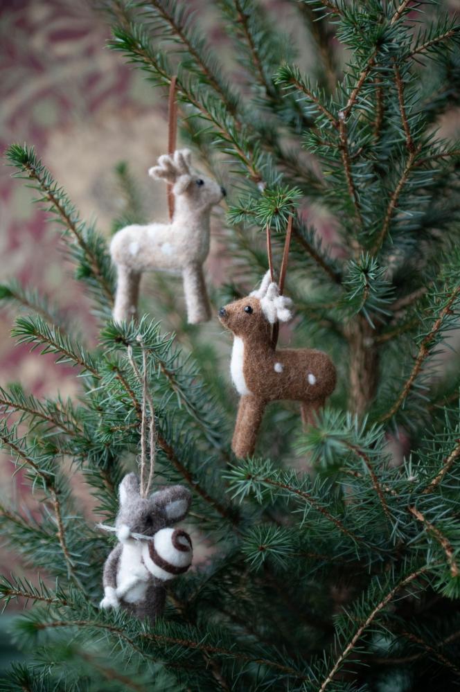 En fantastiskt söt hjort i ull med ett hänge. Fin som julgranspynt, att hänga på paketet tillsammans med en grankvist eller hänga upp som den är på ett skåphandtag. Finns i tre färger att blanda med.