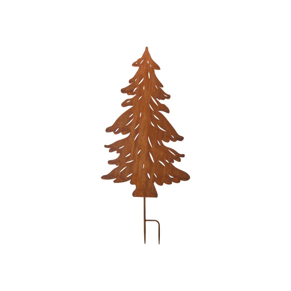 Julgran På Stick - i rostig metall. Superfin juldekoration att sticka ned i julgruppen, trädgården eller längs en husvägg. Stor och maffig gran som är enkel att sticka ner i jorden. Finns i två storlekar.
