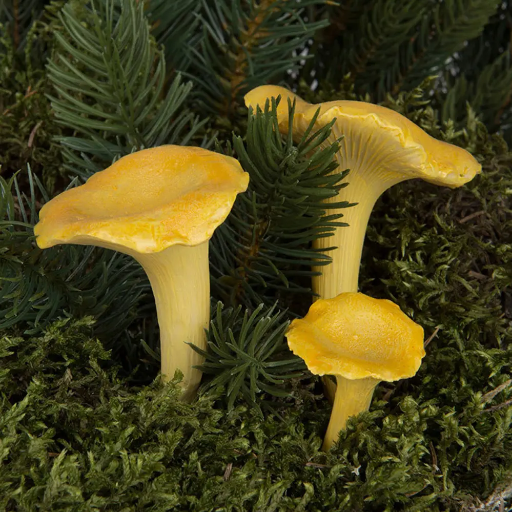 Fina, dekorativa kantareller på pinne. Säljs som ett 3-pack med olika storlekar.