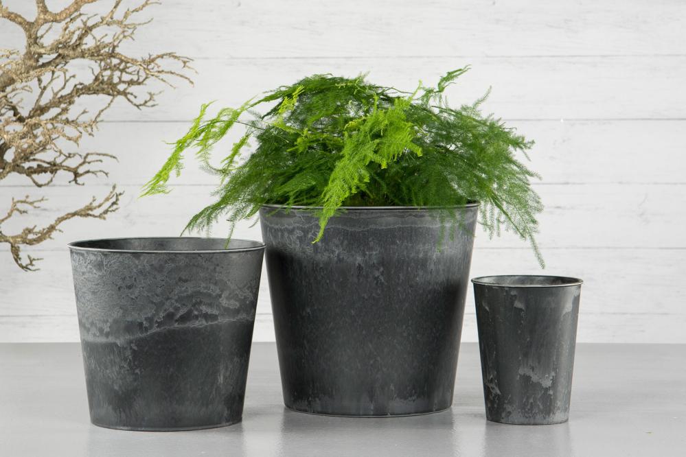 Stilren och snygg gråmelerad kruka som ser ut som betong men är i plast. Superbra där man vill ha en blomkruka som absolut inte läcker vatten.