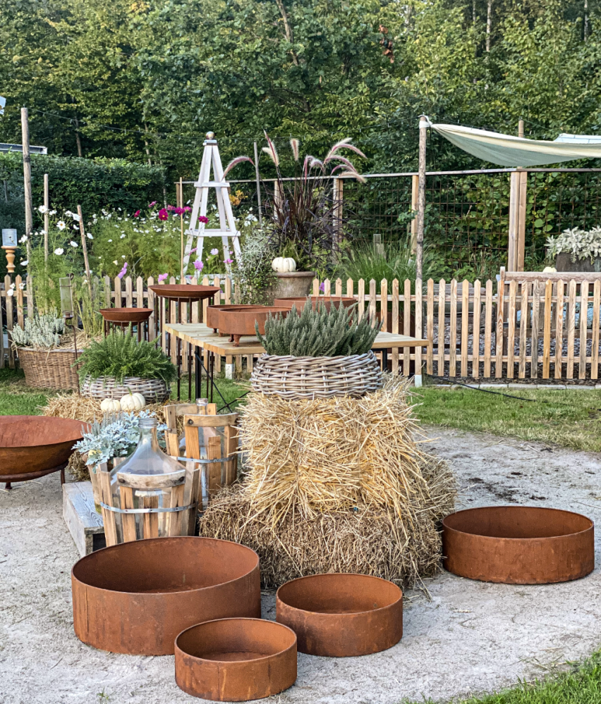 Fyra stycken helt underbara utekrukor i olika storlekar i rostig metall, perfekt att ha ute i trädgården till olika planteringar och växter. Denna rostiga finnish är så vacker i både en grönskande trädgård och under höst och vintertider.