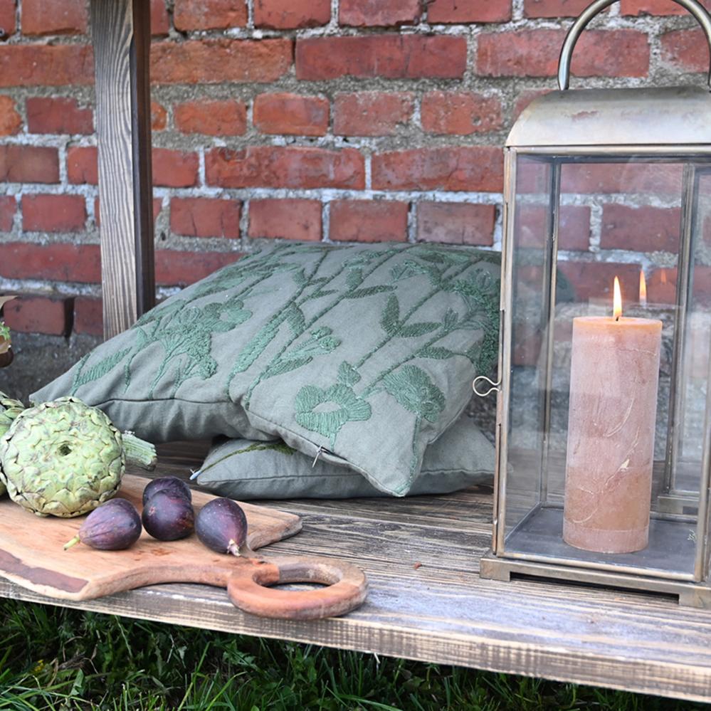 Kuddfodral - broderade blommor - Grön - 45 x 45 cm