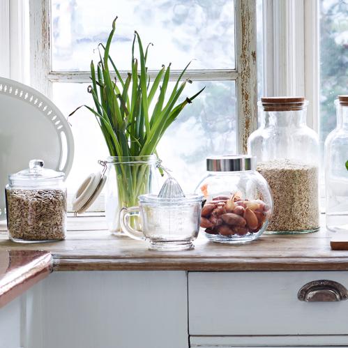 Liggande glasburk med lock. Stapelbara om man lägger dem platt. Ställ några av dessa på kökshyllan och fyll dem med godis så har du vips skapat en mysig känsla av gammal diversehandel. Praktiskt och snyggt i badrummet också med topps och bommulspads. Gammaldags godisburk eller vad ska man egentlign döpa dessa till tycker ni?