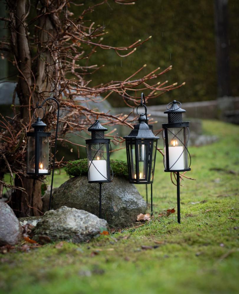 Hängande ljuslykta på pinne - Svart - 65 cm