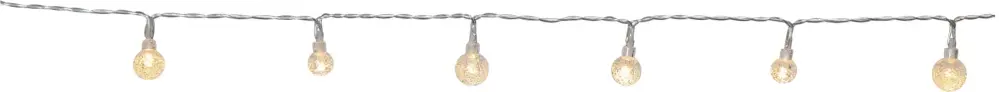 Ljusslinga med 50st LED-ljuskällor för utomhusbruk. Har ett varmvitt sken som skapar en härlig stämning i mörkret, dekorera partytältet, kalaset eller terrassen med denna fina ljusslinga. Slingan är 5 meter lång med transparant kabel.