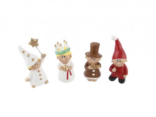 Ett helt bedårande litet Luciatåg med en Lucia, tomtnisse, stjärngosse och pepparkaksgubbe. Sötare blir det inte! Perfekt adventspynt och julpynt.