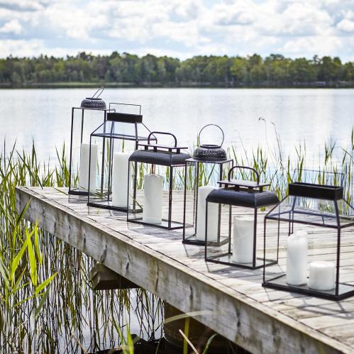 Ljuslykta för blockljus. Vacker stilren ljuslykta i metall och glas. Kommer att fortsätta patineras om den utsätts för fukt.