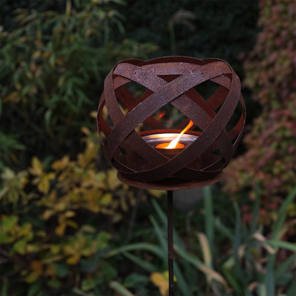 Marschallhållaren Tagliatelle är inspirerad av våra bandklot och döpt efter den klassiska pastasorten som gett formen sitt svepande uttryck. De böljande metallbanden släpper igenom lågans sken och skapar ett levande spel av ljus och skuggor. En marschall med både tyngd och lätthet - som drar blickarna till sig, särskilt i grupp längs en stig eller i entrén.