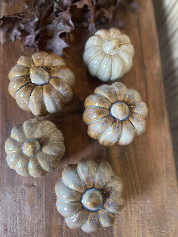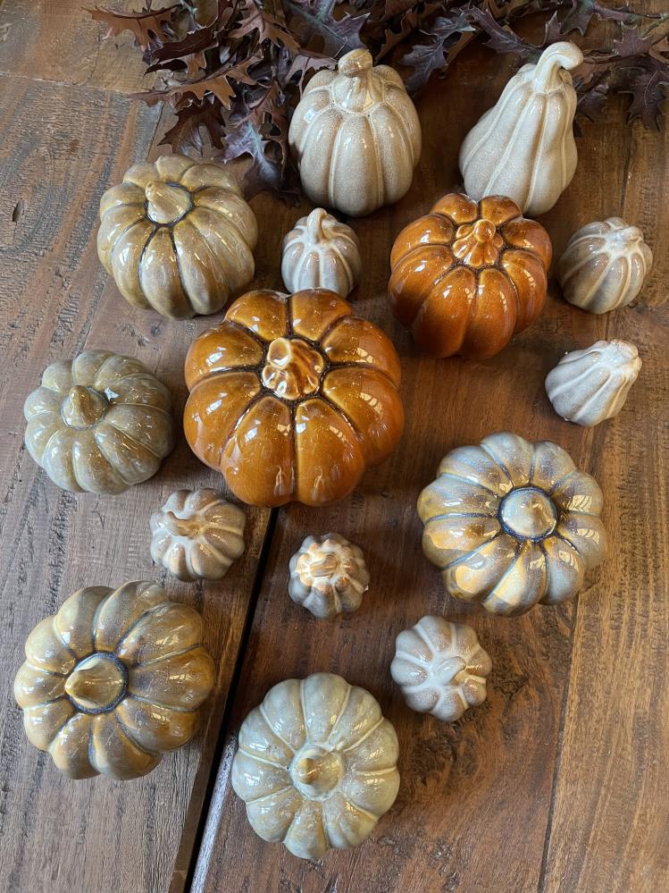 Dekorativ keramisk pumpa med naturinspirerad färg – perfekt för höstdekor och Halloween. Tillför säsongsbetonad charm till din heminredning.