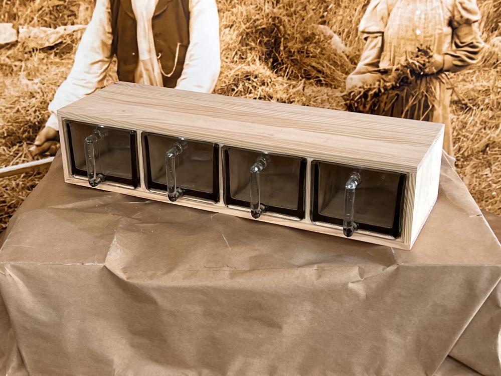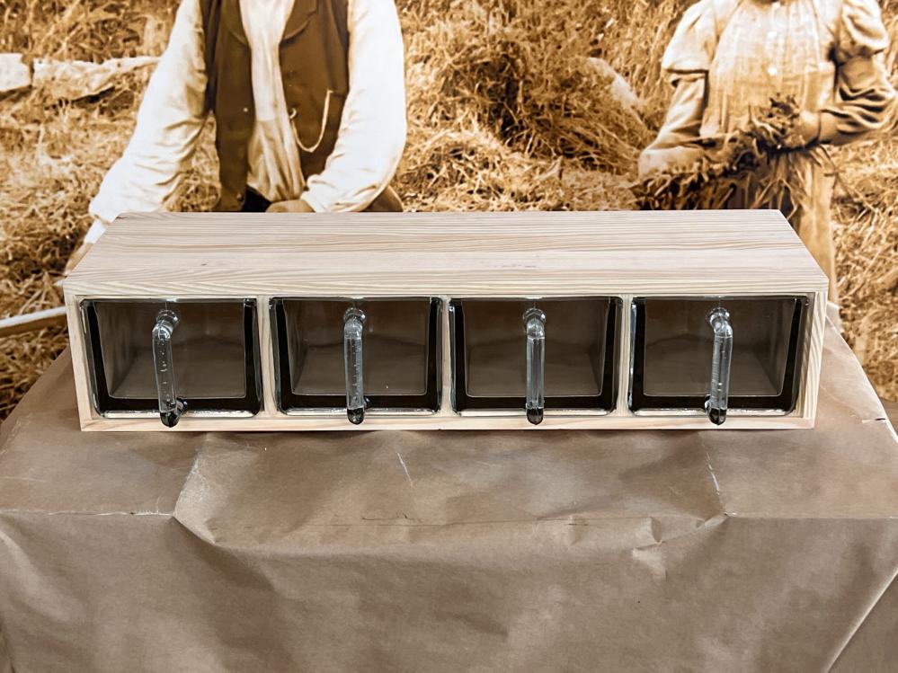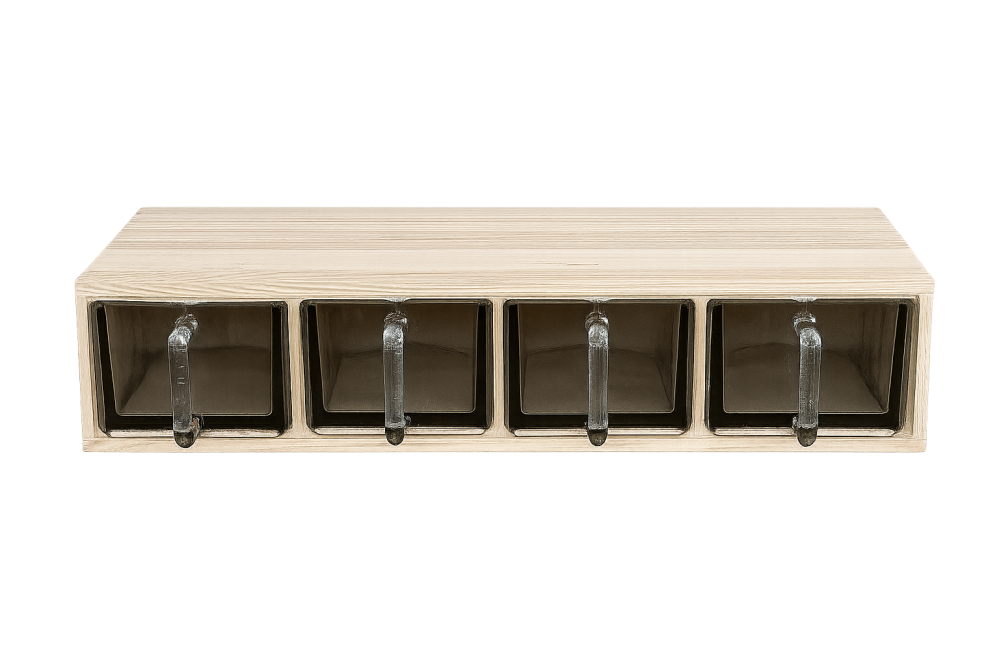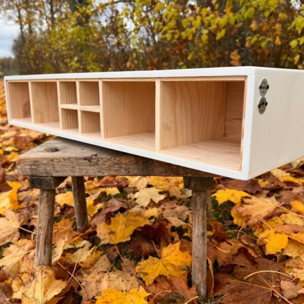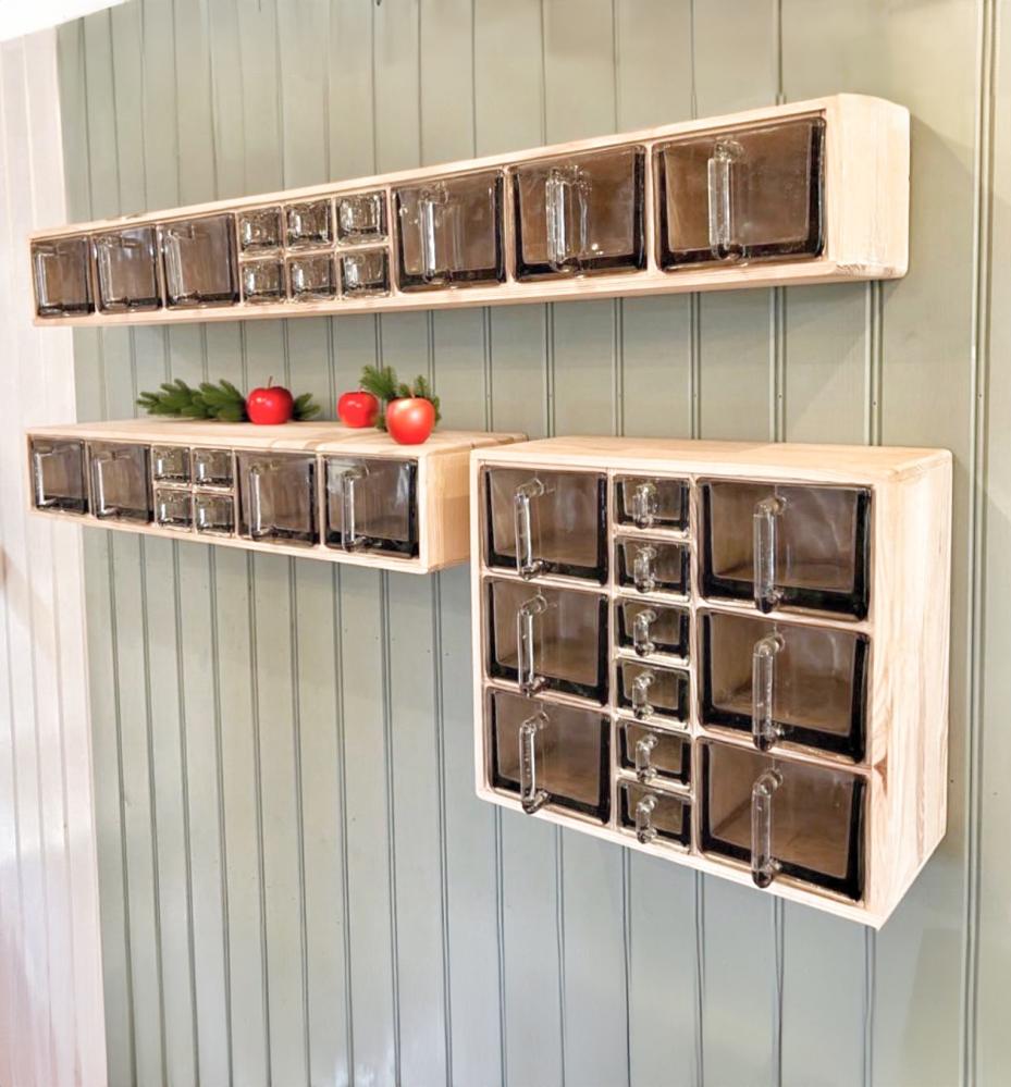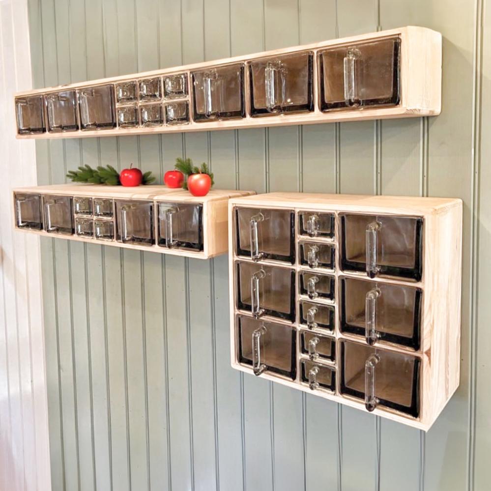 I dessa förvarar du socker, salt, mjöl, kvitton eller vad du vill. Denna modell kan du antingen hänga på väggen eller ställa på en bänk i köket. Gammaldags och nostalgisk känsla - Så fint och mysigt! Skäppor medföljer men du kan också hänga upp den som en ren vägghylla utan lådor i. Fint att montera dem med exempelvis IKEAS köksstommar och fint att montera flera på rad under överskåpen.