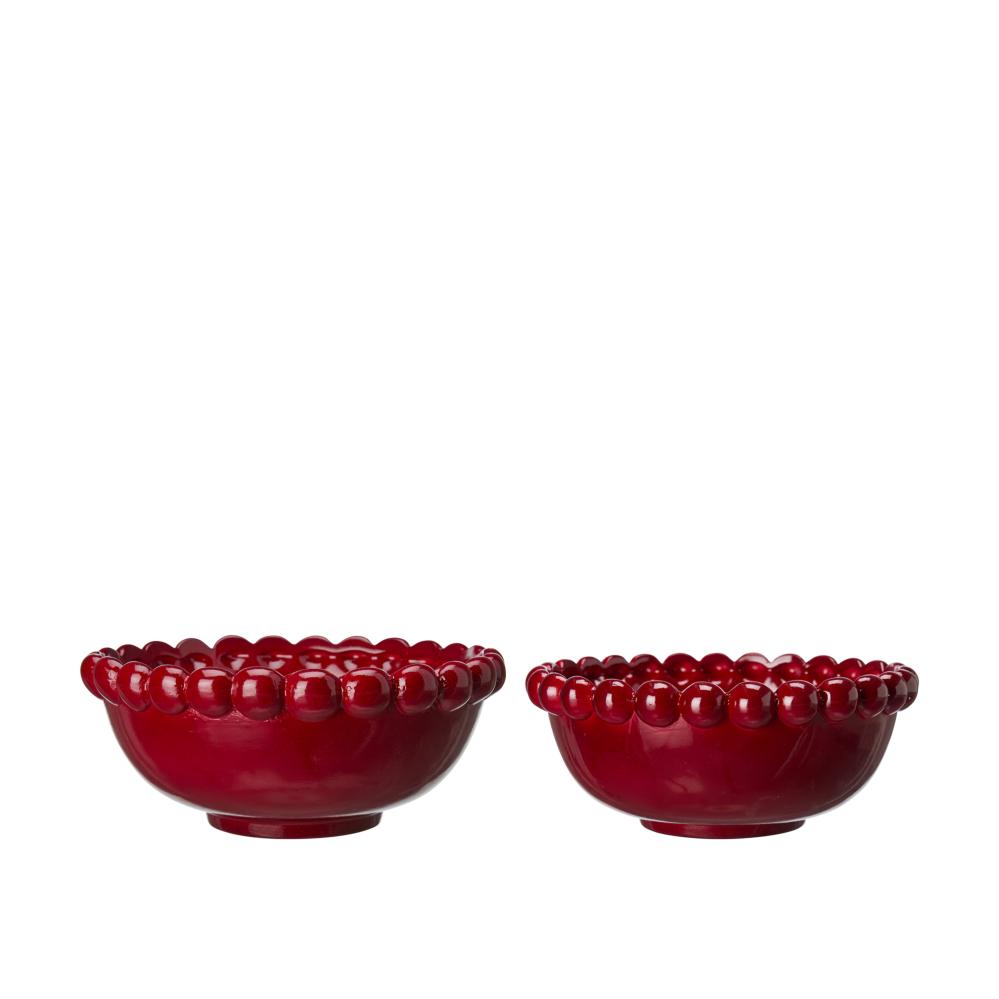 Röd liten skål som även kan användas som kruka. Passar perfekt till juldekoratinen hemma. Elegant och fin med den bubblade kanten upptill. Finns i två storlekar och flera modeller i samma serie.