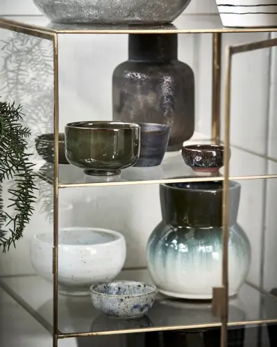 Stilrent glasskåp med 2 st hyllor. Du kan använda den i alla rum, snyggt att ha som nattduksbord vid sidan om sängen bland annat. Eller så går det lika bra att ha den i köket för att förvara sådant som du gärna vill visa upp i inredningen.