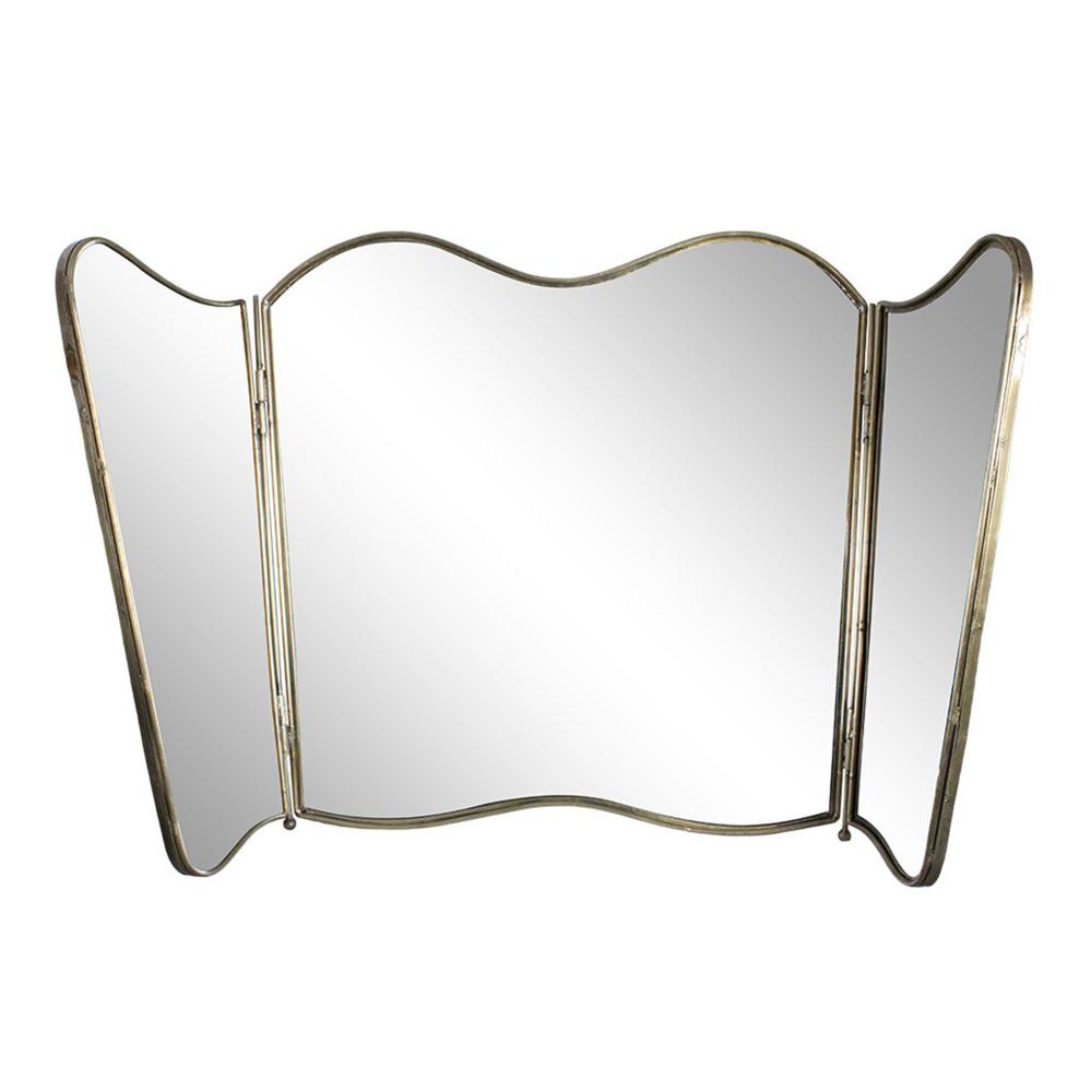 Vacker gammaldags vikbar spegel med vågig kant i antik mässingsfinish. Placera på ett sminkbord, byrå eller häng upp på väggen. De två yttre delarna går att fälla in.