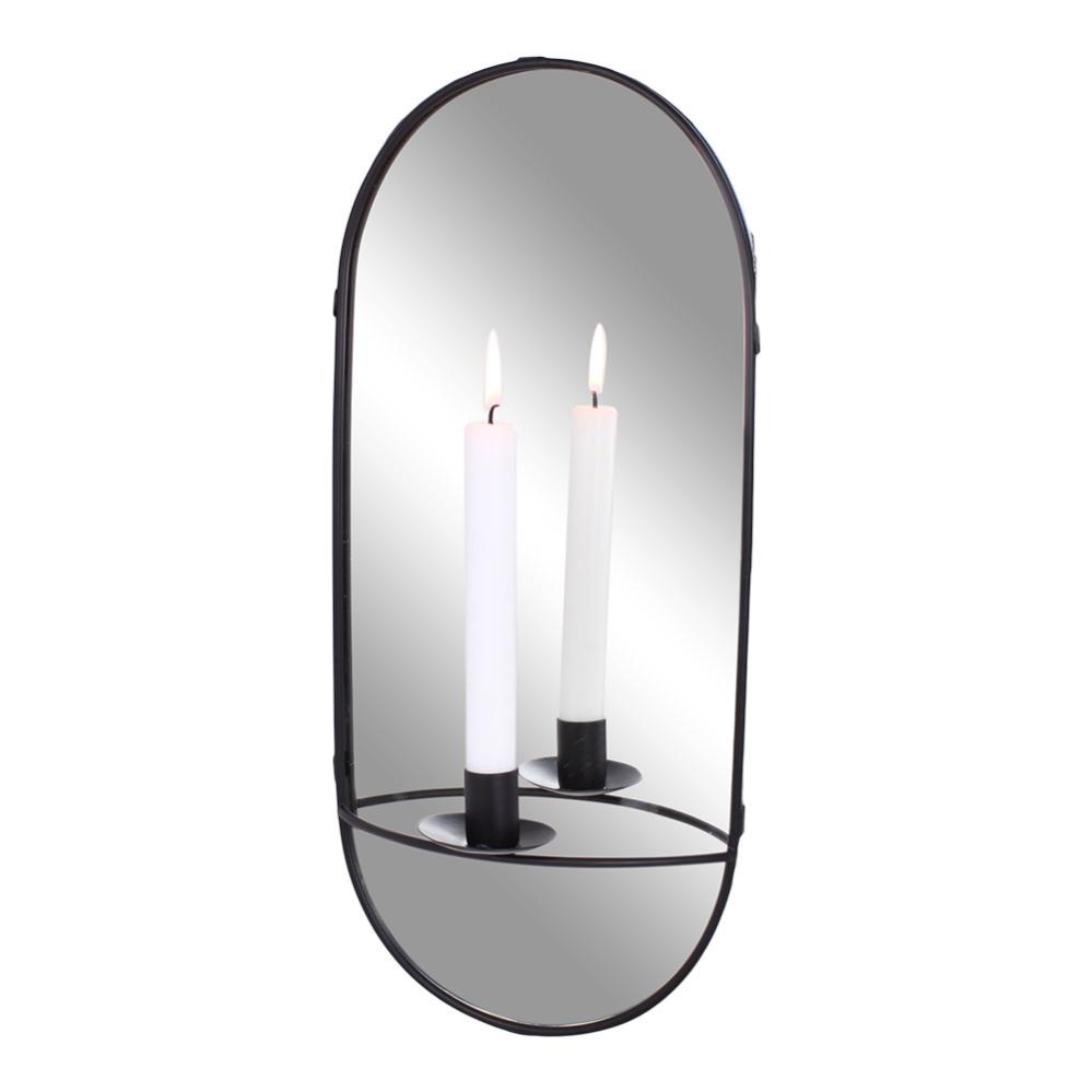 Spegel m. Ljushållare Svart - W 20,5 x H 46