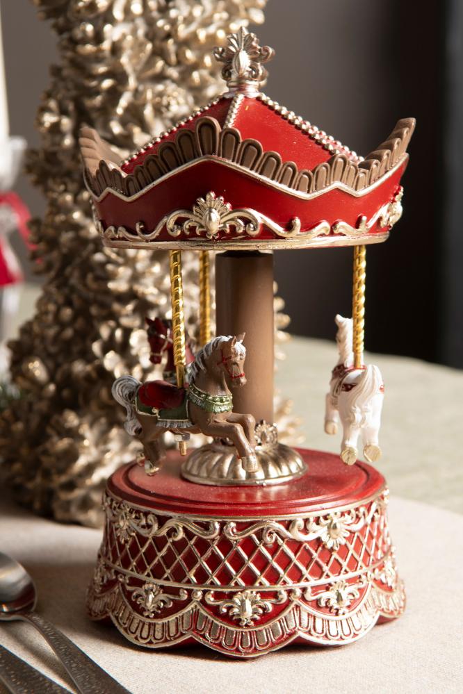 Inred med musik och lekfullhet med en fin speldosa som ser ut som en karusell.