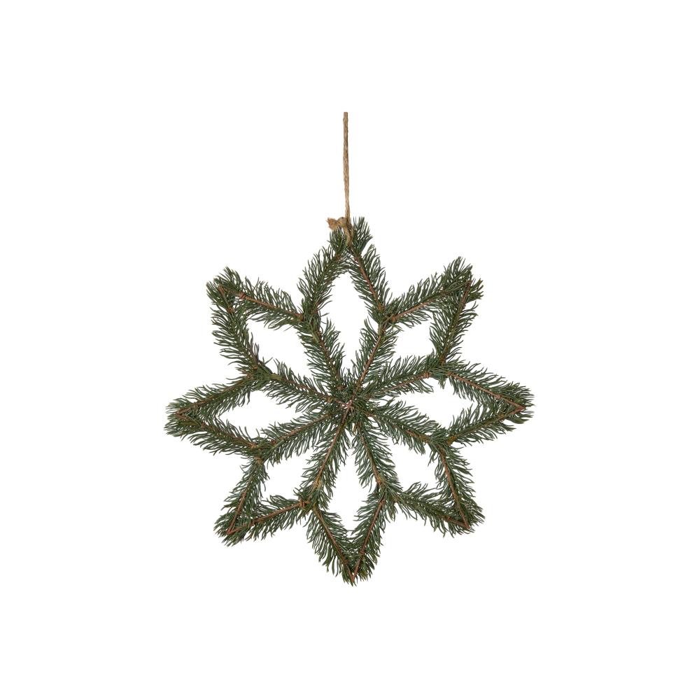 Stjärna i konstgjord gran - en unik detalj i naturlig känsla. Skapa en varm och inbjudande julstämning med denna stjärna. Den gröna, barrliknande ytan ger ett naturligt och traditionellt uttryck – utan att tappa barren! Perfekt att hänga på dörren, väggen eller placera som ett blickfång i ett vinterfint stilleben.