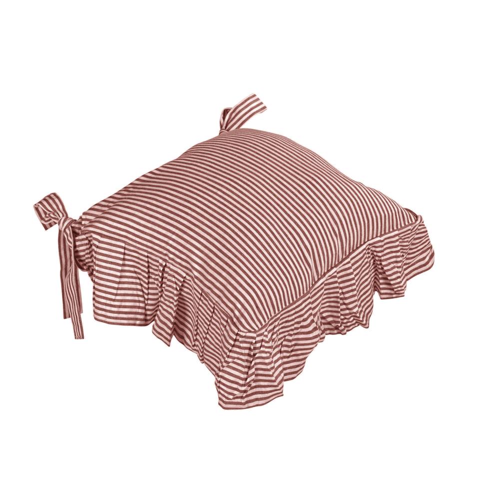 Ett smalrandigt stolsfodral med volang på tre sidor är en elegant och klassisk detalj som ger en mjuk och tidlös känsla till stolen. Volangen ger stolsfodralet en extra dimension av charm och elegans.