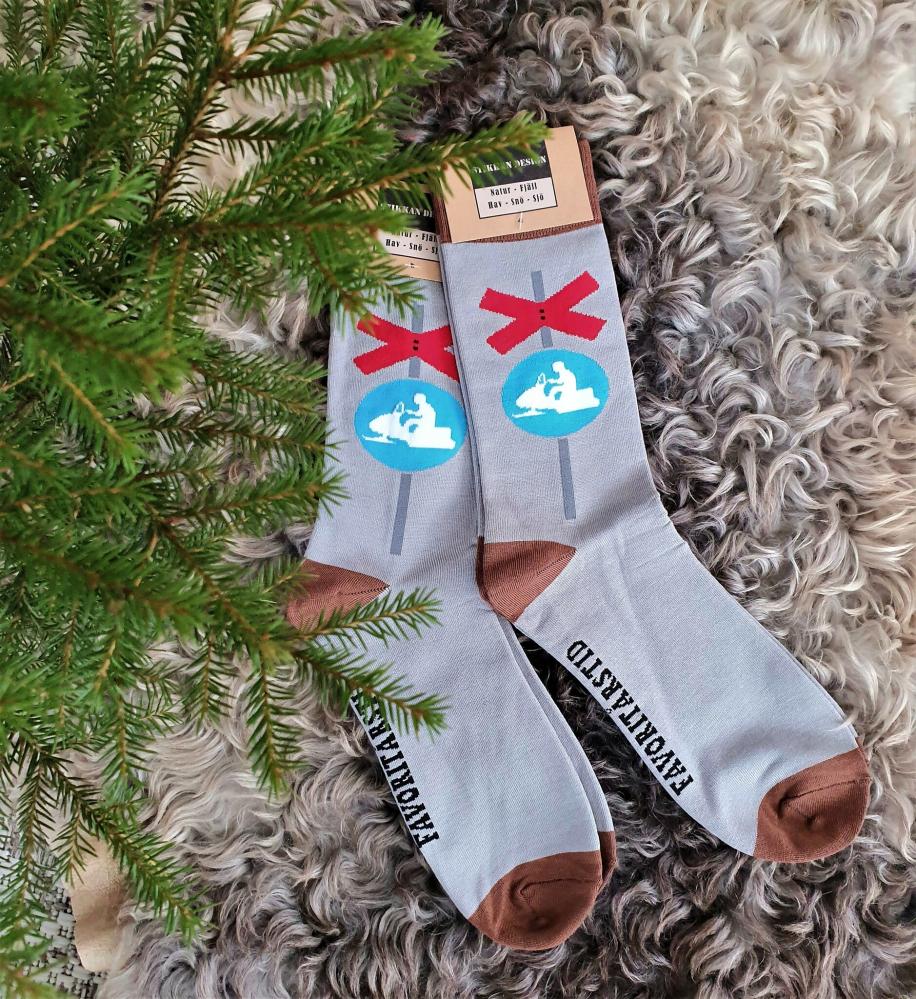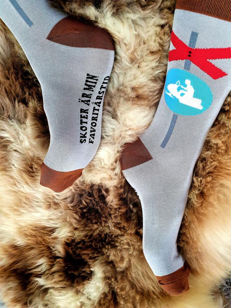 Strumpor i superskönt bambumaterial. Strumporna har motivet av en skoterskylt på insidan av smalbenet och under foten, på trampdynan står det "Skoter är min favoritårstid". Strumporna är inte bara supersköna utan bambu har temperaturreglerande och fuktadsorberande egenskaper och gör att fötterna hålls torra samtidigt som de naturligt motverkar odör. Superfina strumpor att ge bort i julklapp eller present till någon du tycker om.