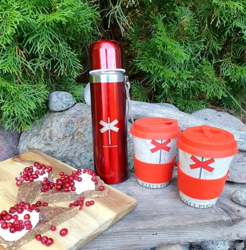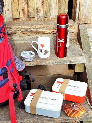 Jättefin termos som rymmer 500 ml. Termosen är röd med 1st ledkryss i lasergravyr. Perfekt att ha med ut i skidbacken eller på fjället med kaffe, te eller mjölkchoklad. Fin julklapp till någon som älskar fjällvärlden. Varje fjällstuga bör ha en sådan termos ;-)