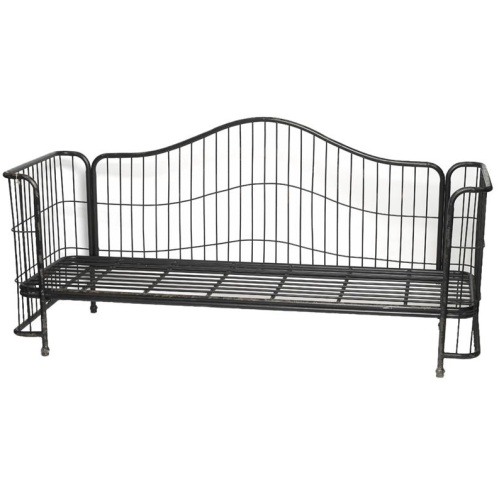 Vacker dagbädd i svartfärgad metall med dekorativt och stilrent mönster på ryggstödet. Perfekt att ha i köket, på altanen eller i trädgården.