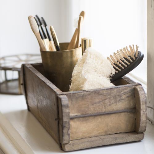 Mycket fin trälåda. Ser verkligen äldre ut. Mina oljeflaskor passar perfekt på köksbänken.