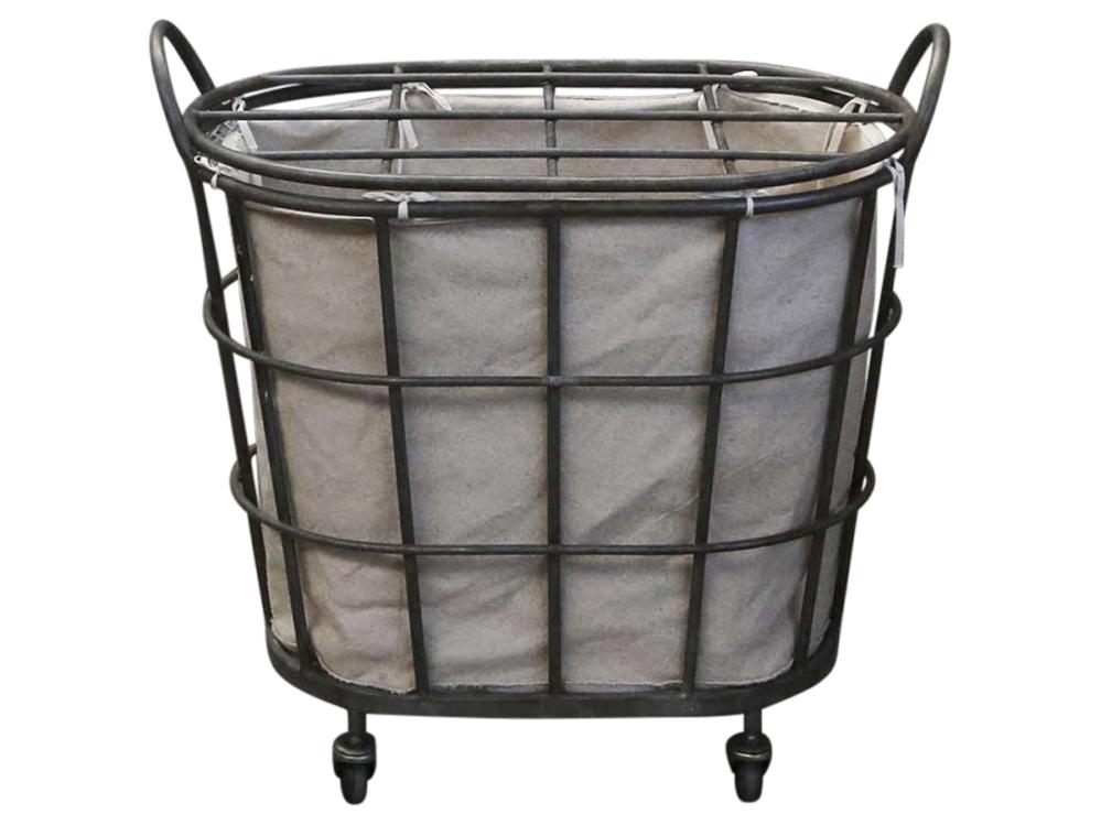 Tvättkorg i metall på hjul med linnetyg på insidan. Supersnygg tvättkorg i smide som passar till lantlig inredning och industristil. Fin i tvättstugan eller badrummet. Eller varför inte i sovrummet hos tonåringen?